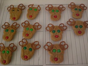 Those are reindeer peanut butter cookies that my mom found in a holiday book. Adorable, right? 🙂 They’re so sweet.