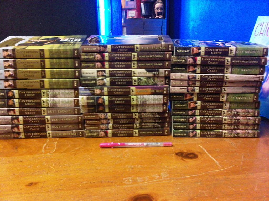 I signed them in pretty pink! 🙂 Everyone there was so nice and it was the COOLEST B&N I’ve ever visited. Next time, I’ll sign stock at the Apache Mall’s B&N.