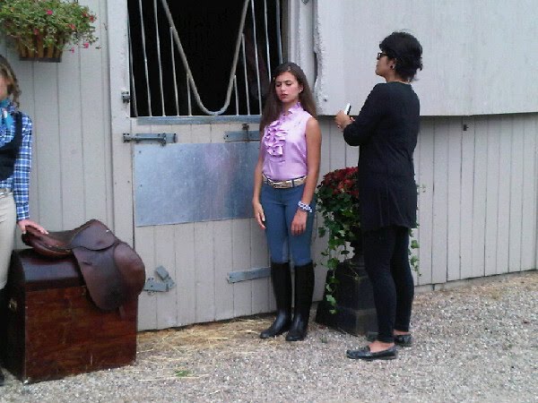 Finally, my main girl Sasha getting her hair touched up before a shot. Aren’t you in LOVE with her shirt? I think this was right before the horse drooled all over her when he stuck his head out of the stall door. She was so great about and got cleaned up and kept going.